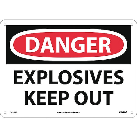 NMC D436AB OSHA Sign, Legend "DANGER - EXPLOSIVES KEEP OUT", 14" Length x 10" Height, Aluminum, Black/Red on White
