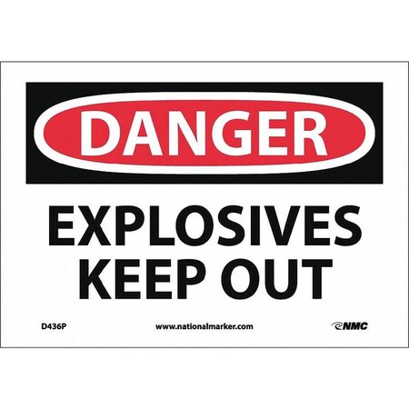 NMC D436P OSHA Sign, Legend "DANGER - EXPLOSIVES KEEP OUT", 10" Length x 7" Height, Pressure Sensitive Vinyl, Black/Red on White