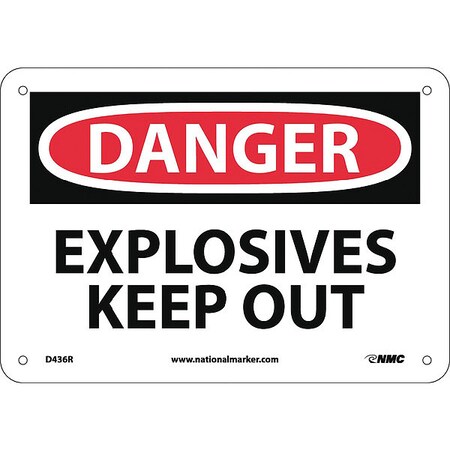 NMC D436R OSHA Sign, Legend "DANGER - EXPLOSIVES KEEP OUT", 10" Length x 7" Height, Rigid Plastic, Black/Red on White