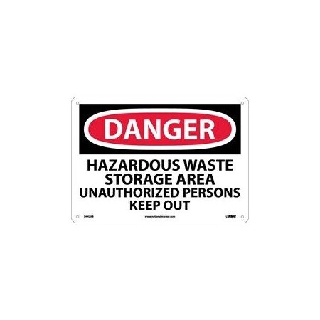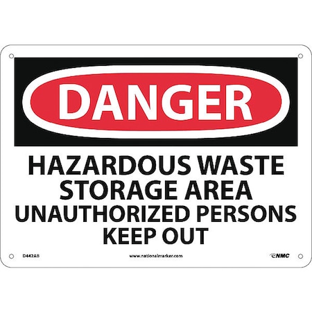 NMC D442AB DANGER - HAZARDOUS WASTE STORAGE AREA UNAUTHORIZED PERSONS KEEP OUT Sign - 14 in. x 10 in. Aluminum Danger Signage, Black/White on White/Red