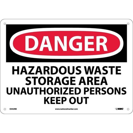 NMC D442RB DANGER - HAZARDOUS WASTE STORAGE AREA UNAUTHORIZED PERSONS KEEP OUT Sign - 14 in. x 10 in. Rigid Plastic Danger Signage, Black/White on White/Red