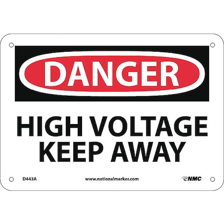 NMC D443A OSHA Sign, Legend "DANGER - HIGH VOLTAGE KEEP AWAY", 10" Length x 7" Height, 0.040 Aluminum, Black/Red on White