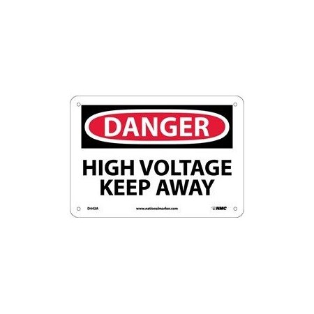 NMC D443R OSHA Sign, Legend "DANGER - HIGH VOLTAGE KEEP AWAY", 10" Length x 7" Height, Rigid Plastic, Black/Red on White