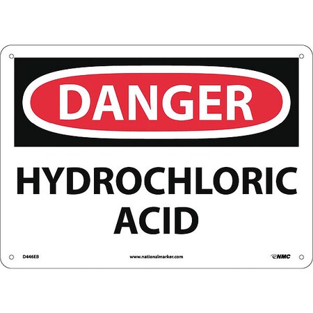NMC D446EB OSHA Sign, Legend "DANGER - HYDROCHLORIC ACID", 14" Length x 10" Height, Fiberglass, Black/Red on White