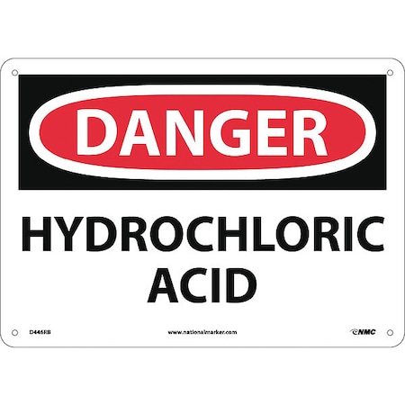 NMC D446RB OSHA Sign, Legend "DANGER - HYDROCHLORIC ACID", 14" Length x 10" Height, Rigid Plastic, Black/Red on White