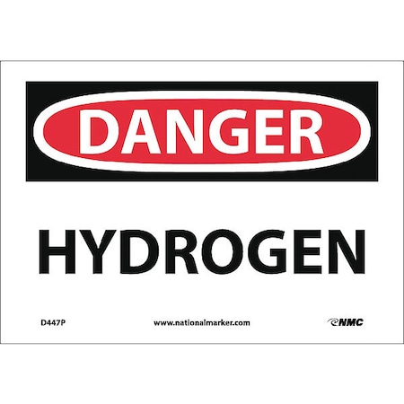 NMC D447P OSHA Sign, Legend "DANGER - HYDROGEN", 10" Length x 7" Height, Pressure Sensitive Adhesive Vinyl, Black/Red on White
