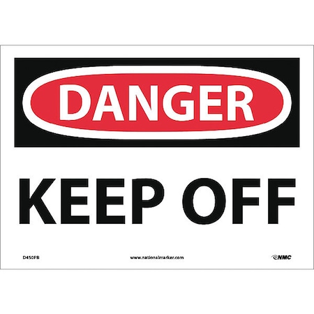 NMC D450PB OSHA Sign, Legend "DANGER - KEEP OFF", 14" Length x 10" Height, Pressure Sensitive Adhesive Vinyl, Black/Red on White