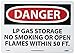 | Feature | Header "DANGER" and Legend "LP GAS STORAGE NO SMOKING OR OPEN FLAMES WITHIN 50 FT" |