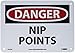 NMC D455R OSHA Sign, Legend "DANGER - NIP POINTS", 10" Length x 7" Height, Rigid Plastic, Black/Red on White