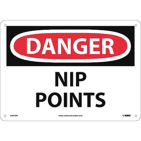 NMC D455RB OSHA Sign, Legend "DANGER - NIP POINTS", 14" Length x 10" Height, Rigid Plastic, Black/Red on White