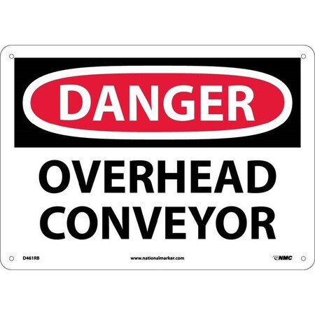 NMC D461AB OSHA Sign, Legend "DANGER - OVERHEAD CONVEYOR", 14" Length x 10" Height, Aluminum, Black/Red on White