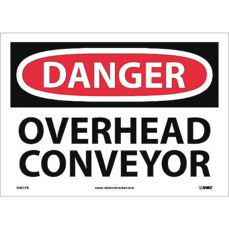 NMC D461PB OSHA Sign, Legend "DANGER - OVERHEAD CONVEYOR", 14" Length x 10" Height, Pressure Sensitive Vinyl, Black/Red on White