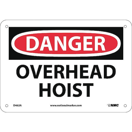 NMC D462A OSHA Sign, Legend "DANGER - OVERHEAD HOIST", 10" Length x 7" Height, Aluminum, Black/Red on White