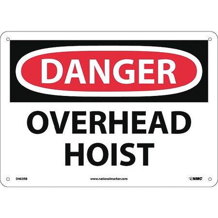 NMC D462RB OSHA Sign, Legend "DANGER - OVERHEAD HOIST", 14" Length x 10" Height, Rigid Plastic, Black/Red on White