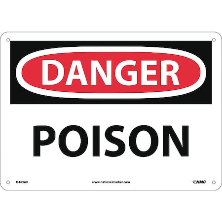 NMC D463AB OSHA Sign, Legend "DANGER - POISON", 14" Length x 10" Height, Aluminum, Black/Red on White