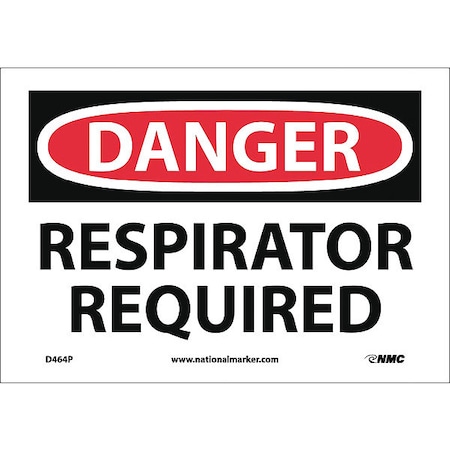 NMC D464P DANGER - RESPIRATOR REQUIRED Sign - 10 in. x 7 in. PS Vinyl Danger Signage, Black/White Text on White/Red Base