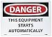 | Feature | Header "DANGER" and legend "THIS EQUIPMENT STARTS AUTOMATICALLY" |