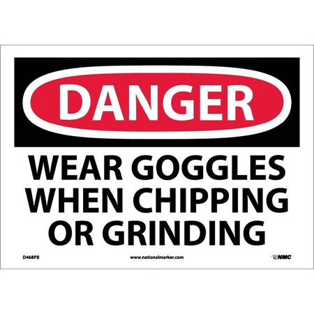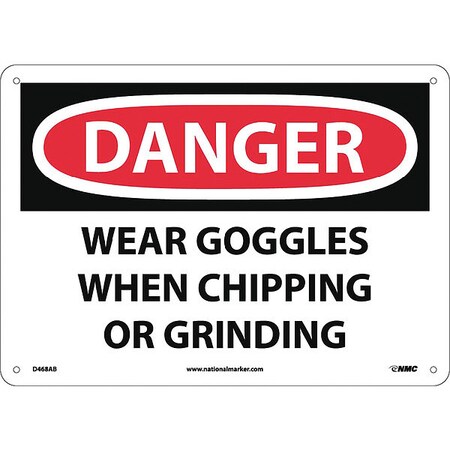 NMC D468AB OSHA Sign, Legend "DANGER - WEAR GOGGLES WHEN CHIPPING AND GRINDING", 14" Length x 10" Height, Aluminum, Black/Red on White