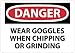 - Header "DANGER" and legend "WEAR GOGGLES WHEN CHIPPING AND GRINDING"
