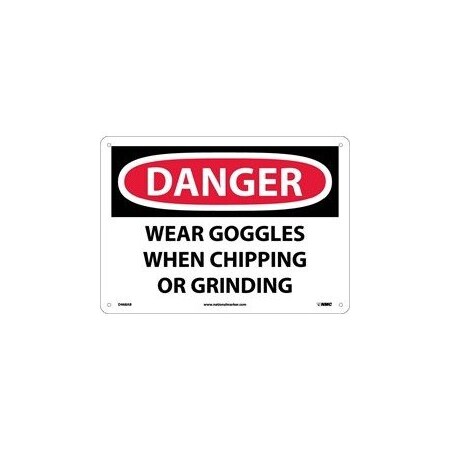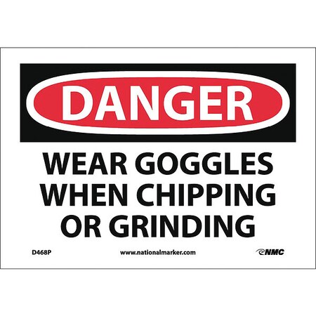 NMC D468P OSHA Sign, Legend "DANGER - WEAR GOGGLES WHEN CHIPPING AND GRINDING", 10" Length x 7" Height, Pressure Sensitive Vinyl, Black/Red on White