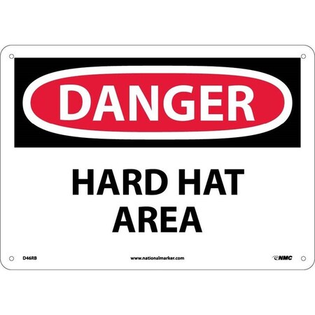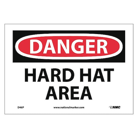 NMC D46P DANGER - HARD HAT AREA Sign - 10 in. x 7 in. PS Vinyl Danger Sign, Black/White Text on White/Red Base