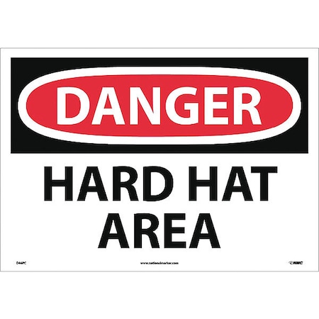NMC D46PC OSHA Sign, Legend "DANGER - HARD HAT AREA", 20" Length x 14" Height, Pressure Sensitive Vinyl, Black/Red on White
