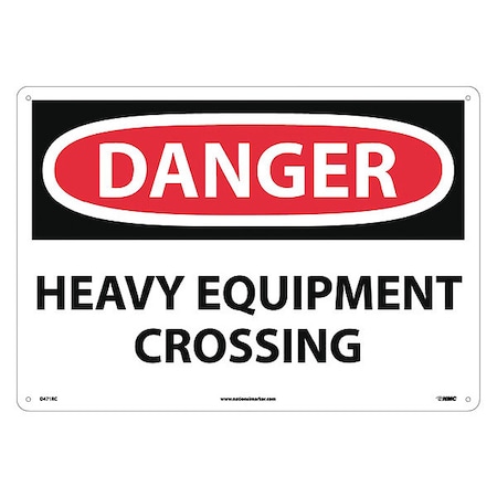 NMC D471RC OSHA Sign, Legend "DANGER - HEAVY EQUIPMENT CROSSING", 20" Length x 14" Height, Rigid Plastic, Black/Red on White