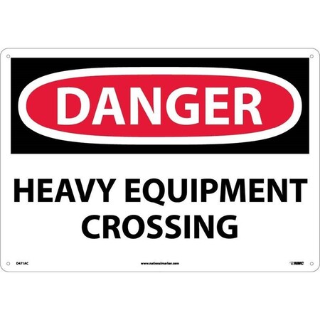 NMC D471RD OSHA Sign, Legend "DANGER - HEAVY EQUIPMENT CROSSING", 28" Length x 20" Height, Rigid Plastic, Black/Red on White
