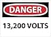- Header "DANGER"and Legend "13,200 VOLTS"