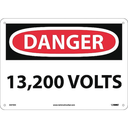 NMC D473EB OSHA Sign, Legend "DANGER - 13,200 VOLTS", 14" Length x 10" Height, Fiberglass, Black/Red on White