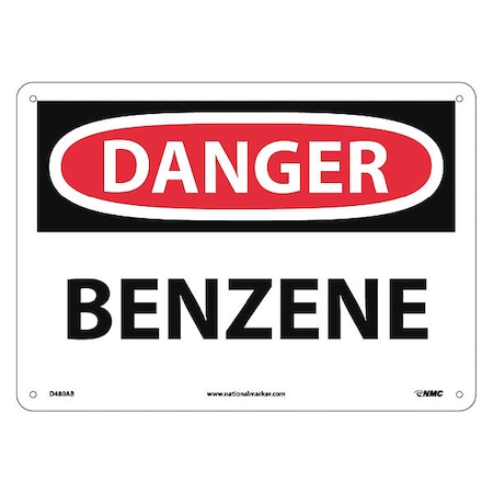 NMC D480AB OSHA Sign, Legend "DANGER - BENZENE", 14" Length x 10" Height, Aluminum, Red/Black on White