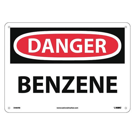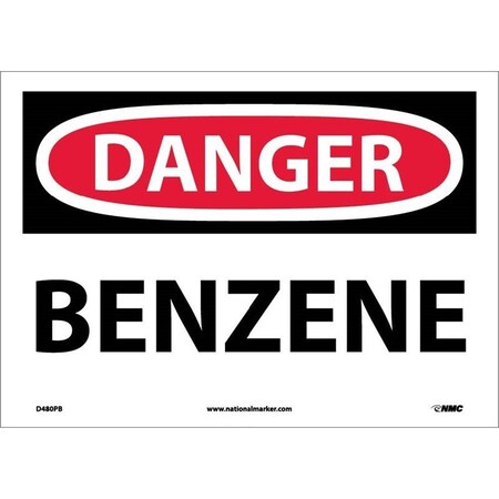 NMC D480RB OSHA Sign, Legend "DANGER - BENZENE", 14" Length x 10" Height, Rigid Plastic, Red/Black on White