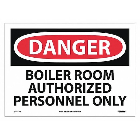 NMC D481PB DANGER - BOILER ROOM AUTHORIZED PERSONNEL ONLY Sign- 14in. x 10in. PS Vinyl Danger Sign with White/Black Text on Red/White Base