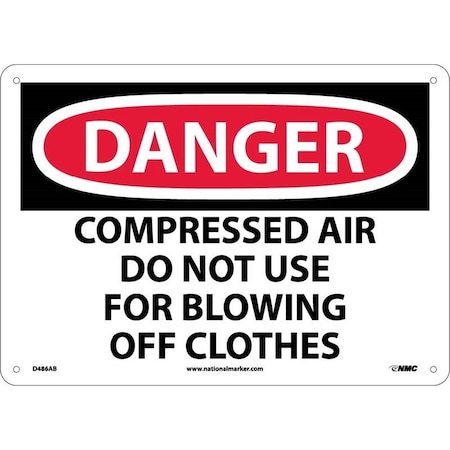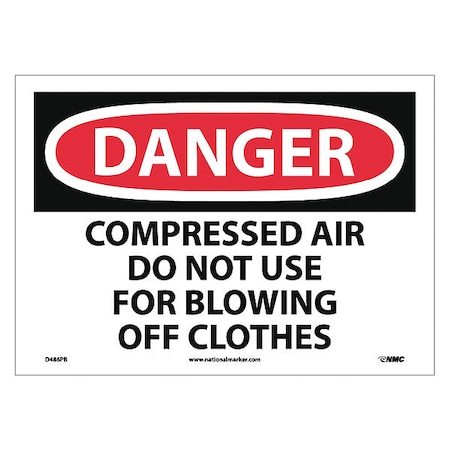 NMC D486PB OSHA Sign, Legend "DANGER - COMPRESSED AIR DO NOT USE FOR BLOWING OFF CLOTHES", 14" Length x 10" Height, Pressure Sensitive Vinyl, Red/Black on White