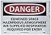 | Feature | Header "DANGER" and legend "CONFINED SPACE HAZARDOUS ATMOSPHERE AIR-SUPPLIED RESPIRATOR REQUIRED FOR ENTRY" |