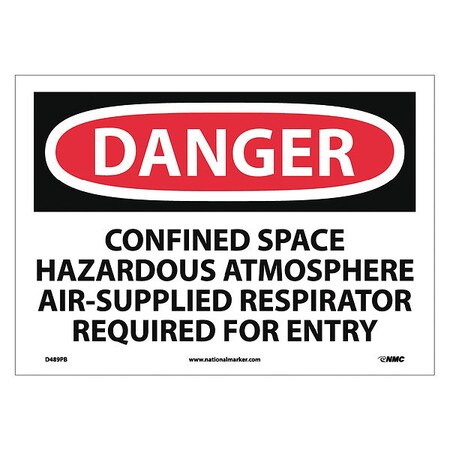 NMC D489PB OSHA Sign, Legend "DANGER - CONFINED SPACE HAZARDOUS ATMOSPHERE AIR-SUPPLIED...", 14" Length x 10" Height, Pressure Sensitive Vinyl, Red/Black on White