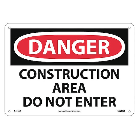 NMC D490AB OSHA Sign, Legend "DANGER - CONSTRUCTION AREA DO NOT ENTER", 14" Length x 10" Height, Aluminum, Red/Black on White