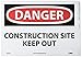 NMC D491PB OSHA Sign, Legend "DANGER - CONSTRUCTION SITE KEEP OUT", 14" Length x 10" Height, Pressure Sensitive Vinyl, Red/Black on White