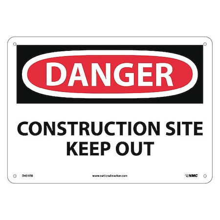 NMC D491RB OSHA Sign, Legend "DANGER - CONSTRUCTION SITE KEEP OUT", 14" Length x 10" Height, Rigid Plastic, Red/Black on White