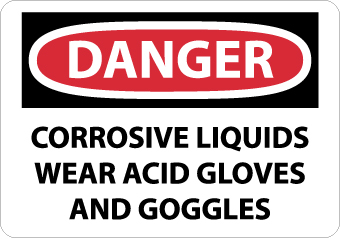 - Danger Signage: it instructs employees to wear gloves and goggles for complete protection when around dangerous corrosive liquids. This OSHA sign helps to maintain a safe and healthy environment at jobsites or workplaces