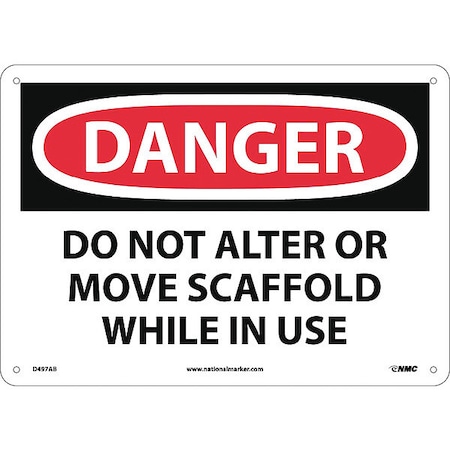 NMC D497AB OSHA Sign, Legend "DANGER - DO NOT ALTER OR MOVE SCAFFOLD WHILE IN USE", 14" Length x 10" Height, Aluminum, Black on White