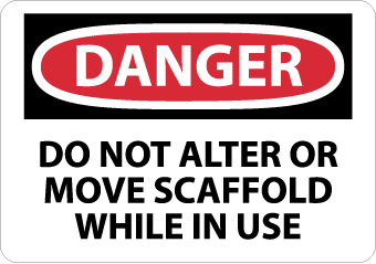 | Feature | Header "DANGER" and legend "DO NOT ALTER OR MOVE SCAFFOLD WHILE IN USE" |