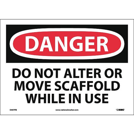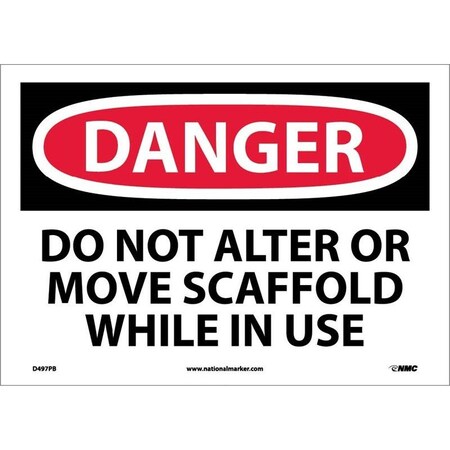 NMC D497PB OSHA Sign, Legend "DANGER - DO NOT ALTER OR MOVE SCAFFOLD WHILE IN USE", 14" Length x 10" Height, Pressure Sensitive Vinyl, Black on White