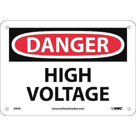 NMC D49A OSHA Sign, Legend "DANGER - HIGH VOLTAGE", 10" Length x 7" Height, 0.040 Aluminum, Black/Red on White
