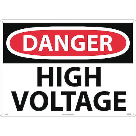 NMC D49AD OSHA Sign, Legend "DANGER - HIGH VOLTAGE", 28" Length x 20" Height, 0.040 Aluminum, Black/Red on White