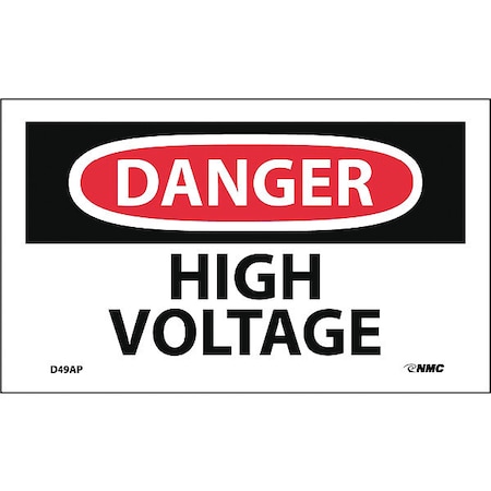 NMC D49AP OSHA Sign, "DANGER HIGH VOLTAGE", 5" Width x 3" Height, Pressure Sensitive Vinyl, Black/Red On White (Pack of 5)