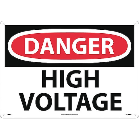 NMC D49RC OSHA Sign, Legend "DANGER - HIGH VOLTAGE", 20" Length x 14" Height, Rigid Plastic, Black/Red on White