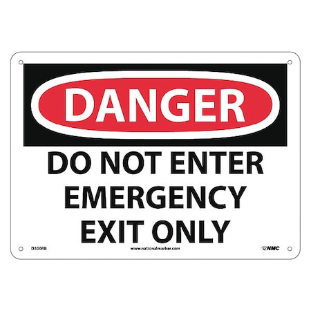NMC D500RB DANGER - DO NOT ENTER EMERGENCY EXIT ONLY Sign - 14 in. x 10 in. Rigid Plastic Danger Signage, Black/White on White/Red