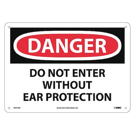 NMC D501AB DANGER - DO NOT ENTER WITHOUT EAR PROTECTION Sign - 14 in. x 10 in. Aluminum Danger Signage, Black/White on White/Red