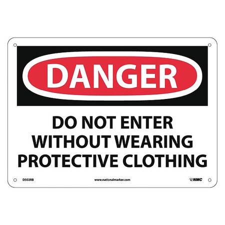 NMC D502RB OSHA Sign, Legend "DANGER - DO NOT ENTER WITHOUT WEARING PROTECTIVE CLOTHING", 14" Length x 10" Height, Rigid Plastic, Black on White